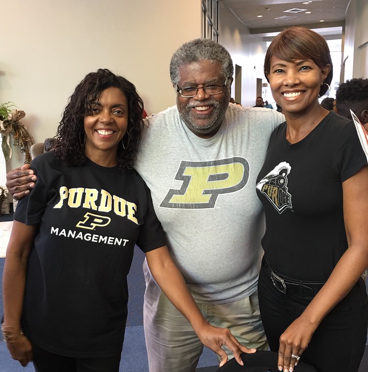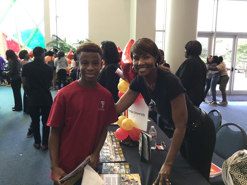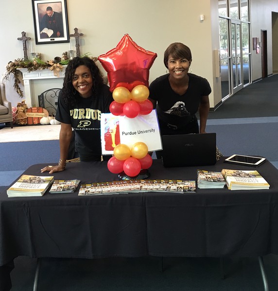 Kassandra Agee Chandler and Cheryl Ash-Simpson of the BOP Alumni Organization hosts a Purdue table at The Fort Bend Church( Sugar Land, TX) College Spirit Day Fair.